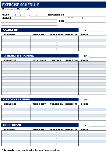 Udvalgt 3 Free Exercise Schedule Templates Schedule Templates